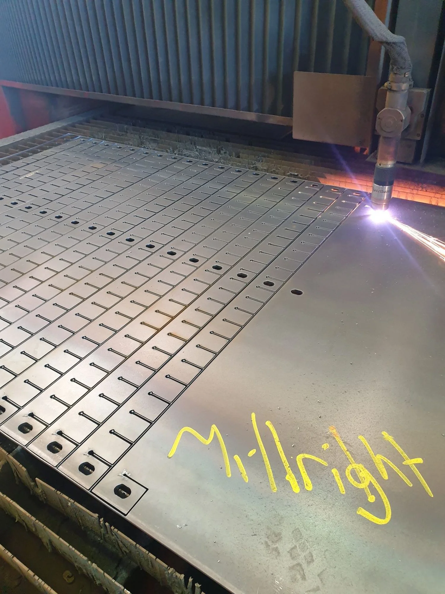 We specialize in plasma, an ideal choice for cost effective cutting of large profiles up to 32mm thick. Our team is experienced in all facets of programming and nesting to keep costs low and a time to a minimum. We pride ourselves on providing excellent quality and are equipped with the latest technology which improves hole and edge quality, especially on material 16mm and above.